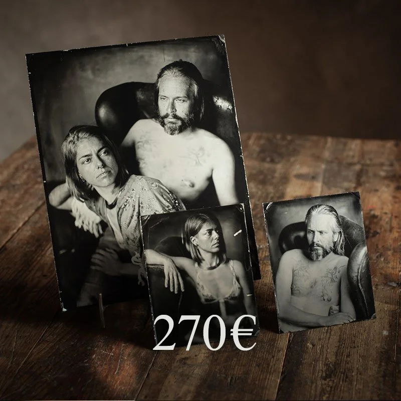 Hazte con un vale para una sesión personalizada a tu gusto y regálalo. Con ellos, puedes configurar una sesión a partir de la experiencia que desees, e invitar a quien quieras a vivir en persona el proceso del colodión húmedo.